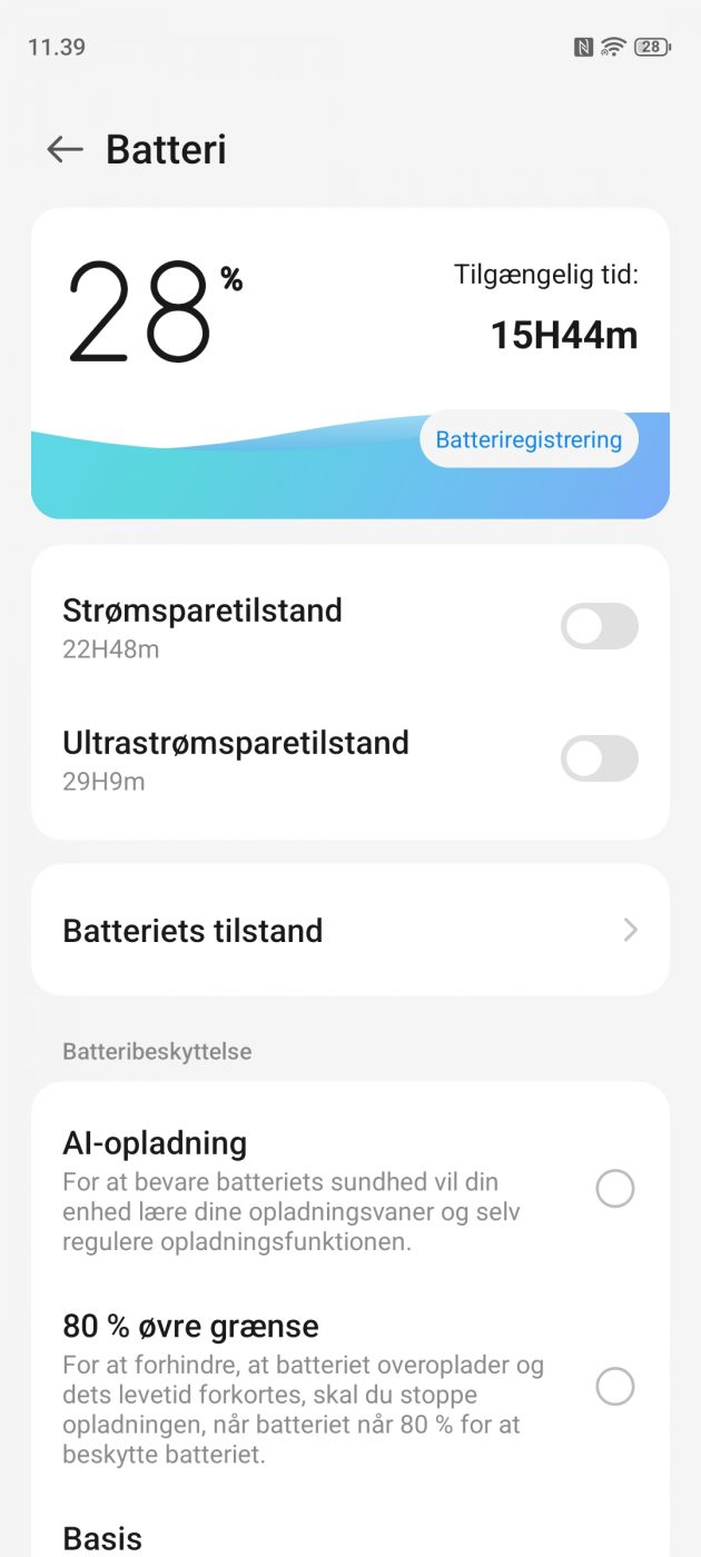 Batteritiden lover at være god ved moderat brug, takket være AI-styring af apps og optimering, selv om med fuld ydelse og hyppig brug af skærm vil det naturligt trække mere batteri.